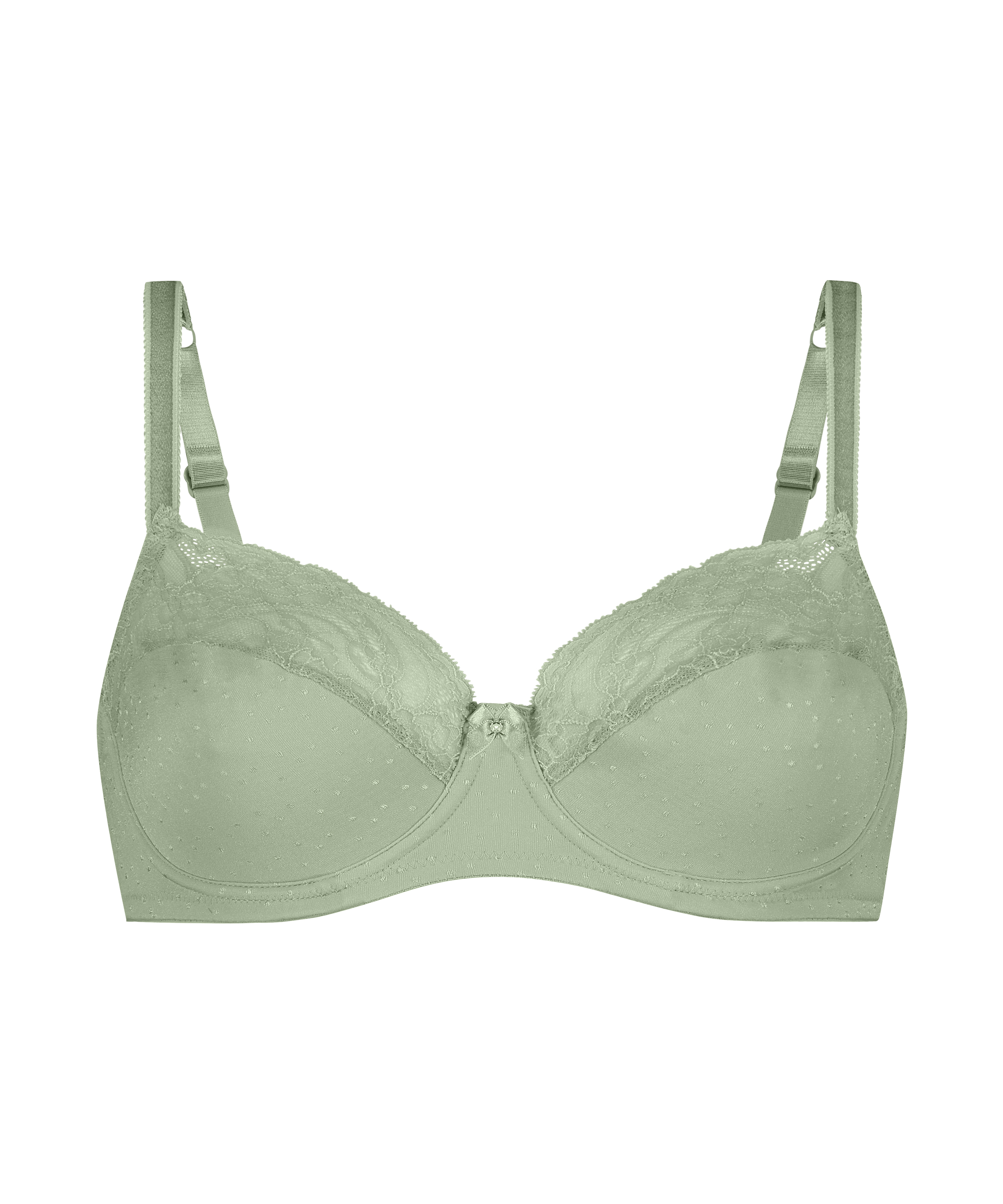 This underwired bra gives you extra comfort. The full cups are suitable for almost any woman. This bra gives you an elegant look and is also very comfortable to wear. Note: Cup sizes F and larger have an extra strip of fabric at the top of the cups to provide more support.
