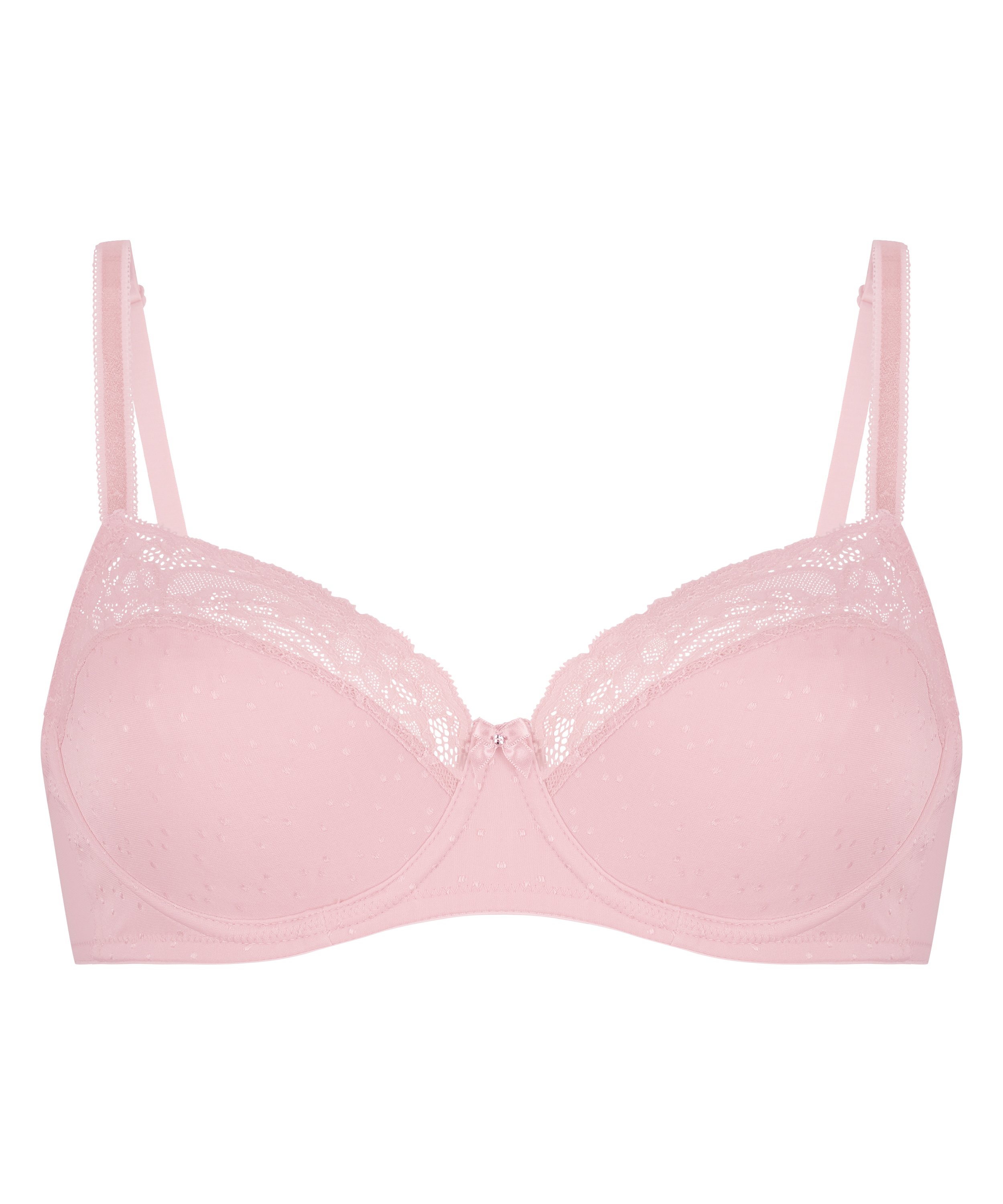 This underwired bra gives you extra comfort. The full cups are suitable for almost any woman. This bra gives you an elegant look and is also very comfortable to wear. Note: Cup sizes F and larger have an extra strip of fabric at the top of the cups to provide more support.