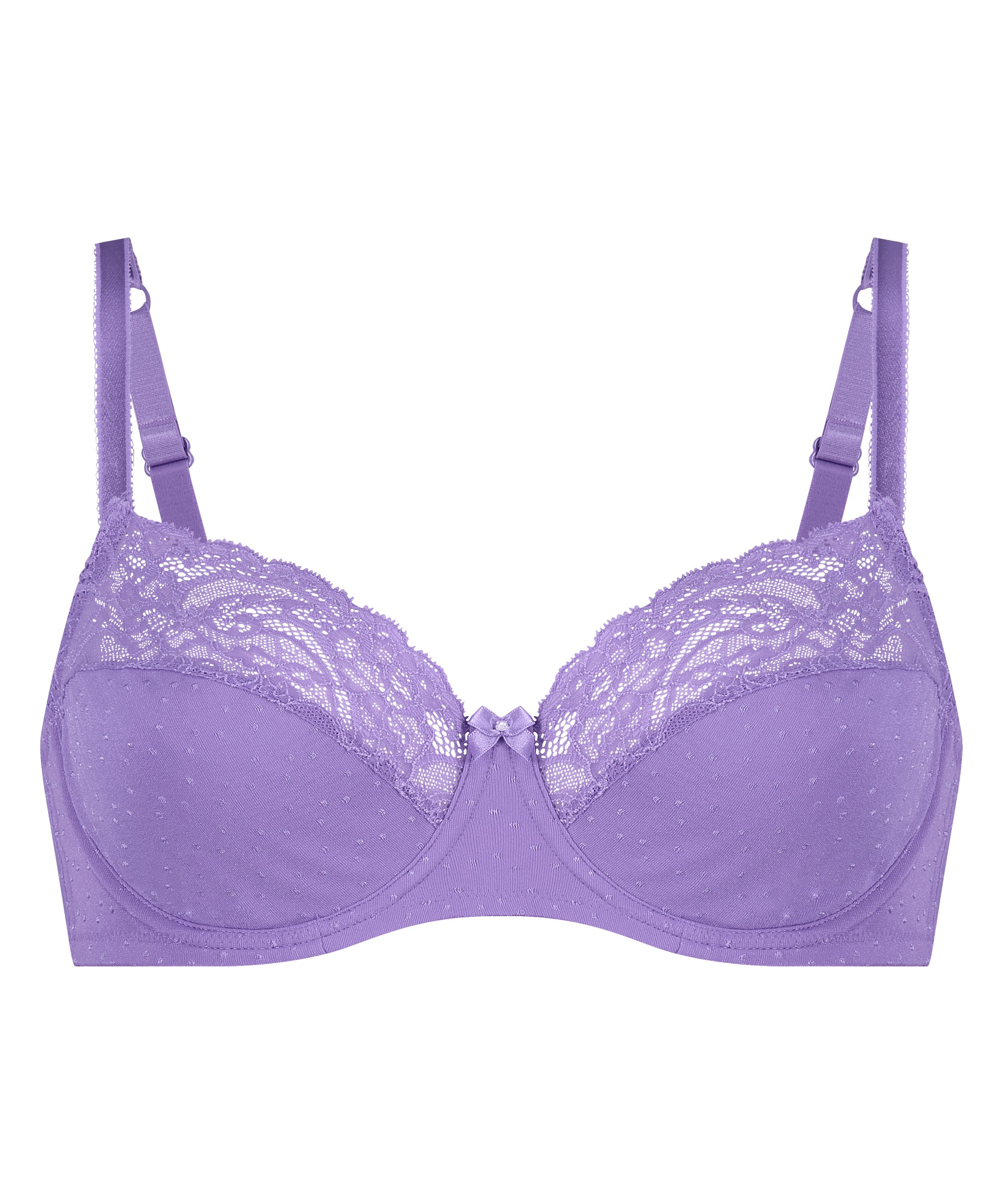 This underwired bra gives you extra comfort. The full cups are suitable for almost any woman. This bra gives you an elegant look and is also very comfortable to wear. Note: Cup sizes F and larger have an extra strip of fabric at the top of the cups to provide more support.