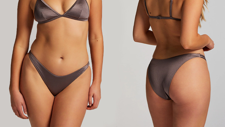 A Brazilian bikini slip (cheeky bikini slip) is for those who like to add a little extra flair to their beach look. This slip is cut higher at the back than a classic bikini bottom, making your legs appear longer and giving you a playful, flirty look. The Brazilian bikini slip comes in two variants: regular and tanga.