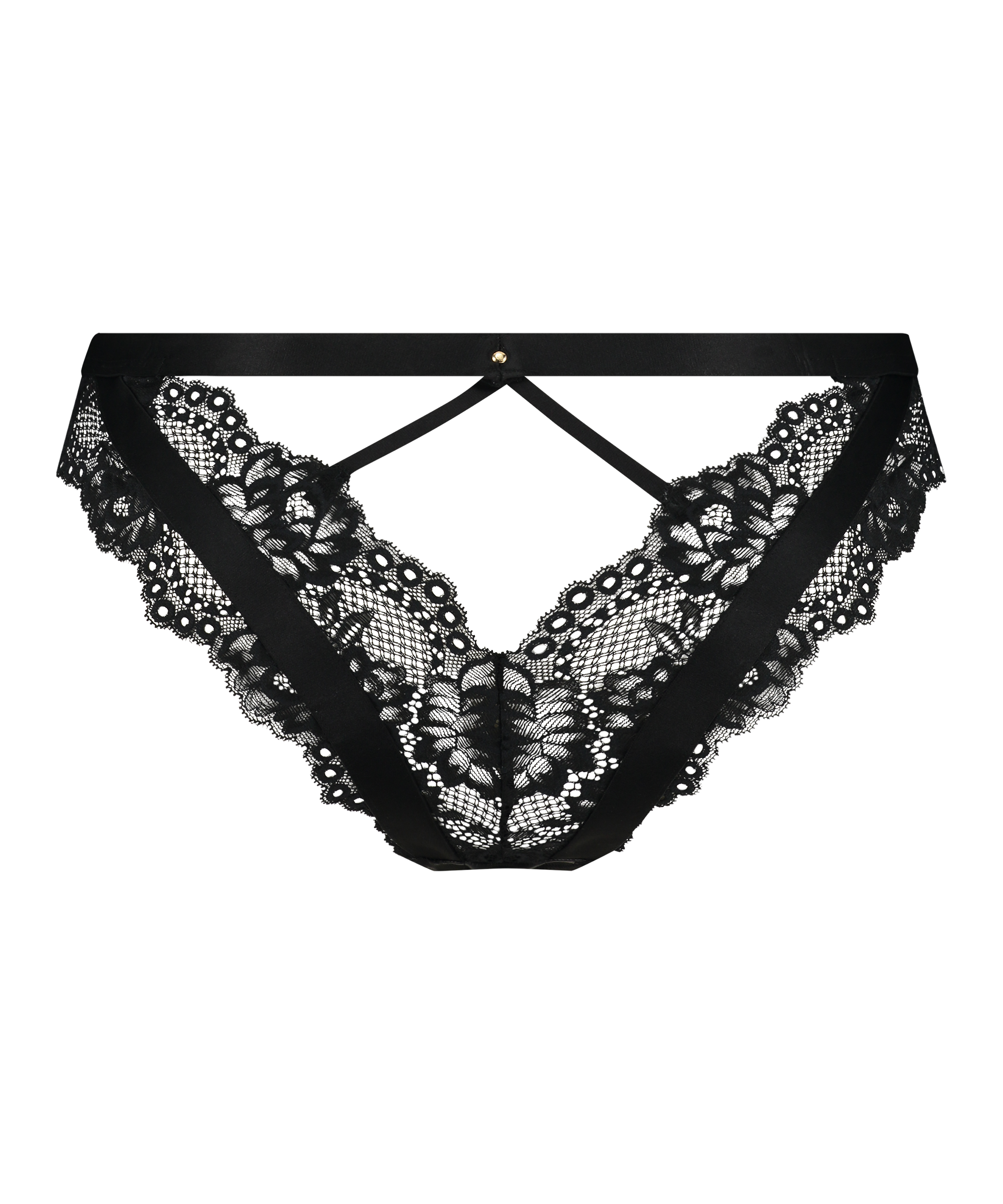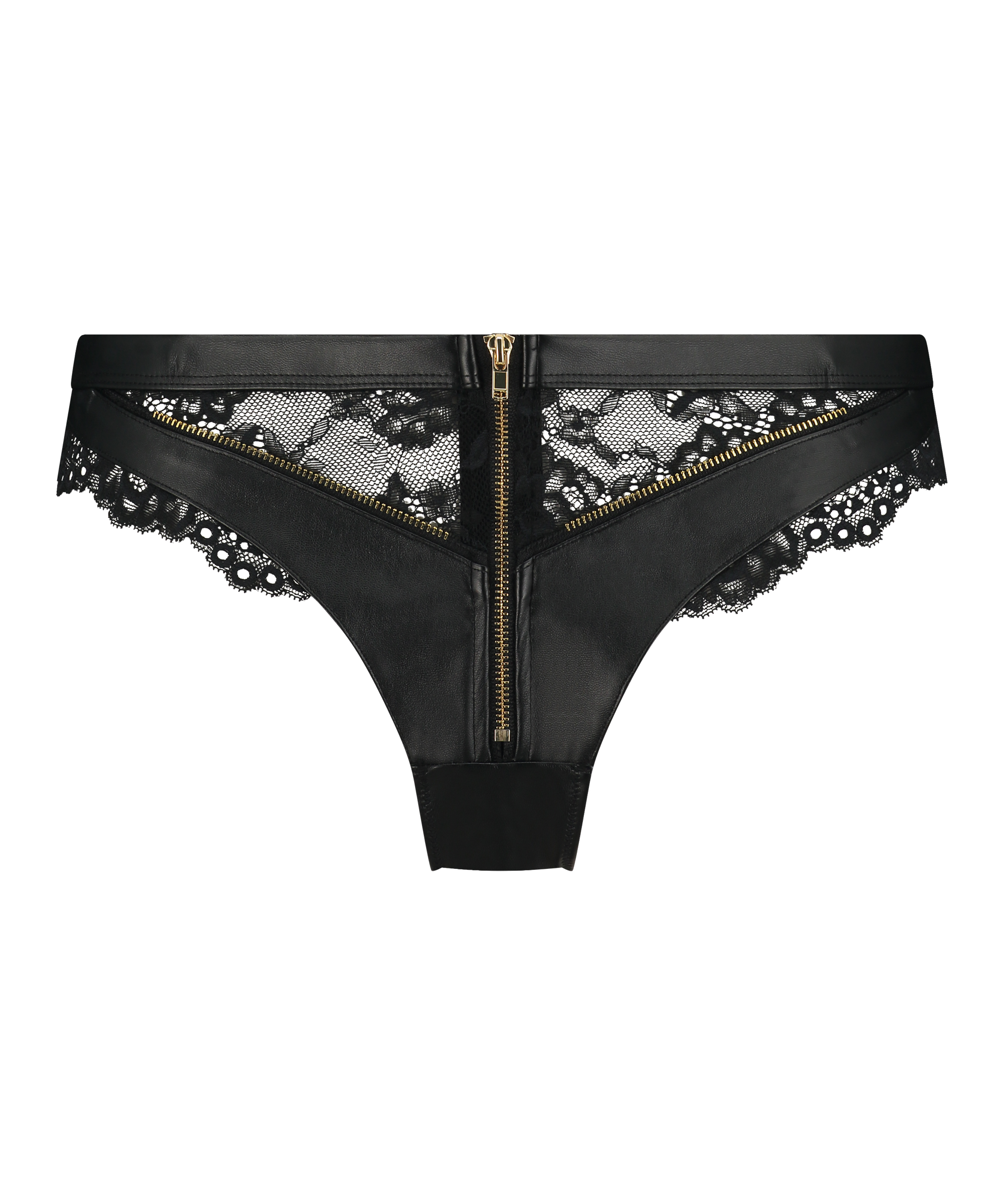 Complete your set with this sexy brazilian knickers. This brazilian knickers features a zip and lace for a very sexy effect. With leather-look finish. From our Private collection.