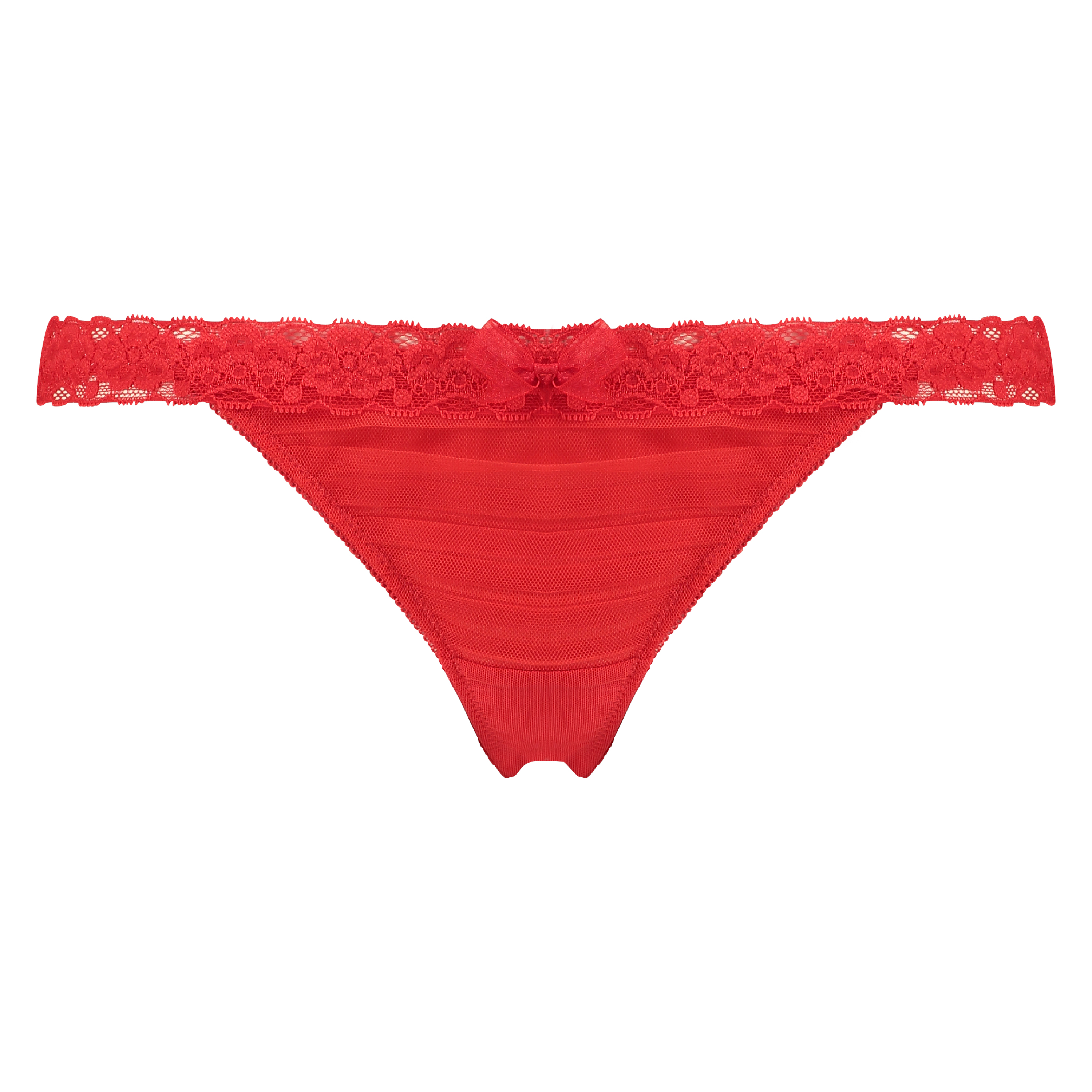 This thong is made from semi-transparent fabric with ruching at the top. A small bow adds a finishing touch.