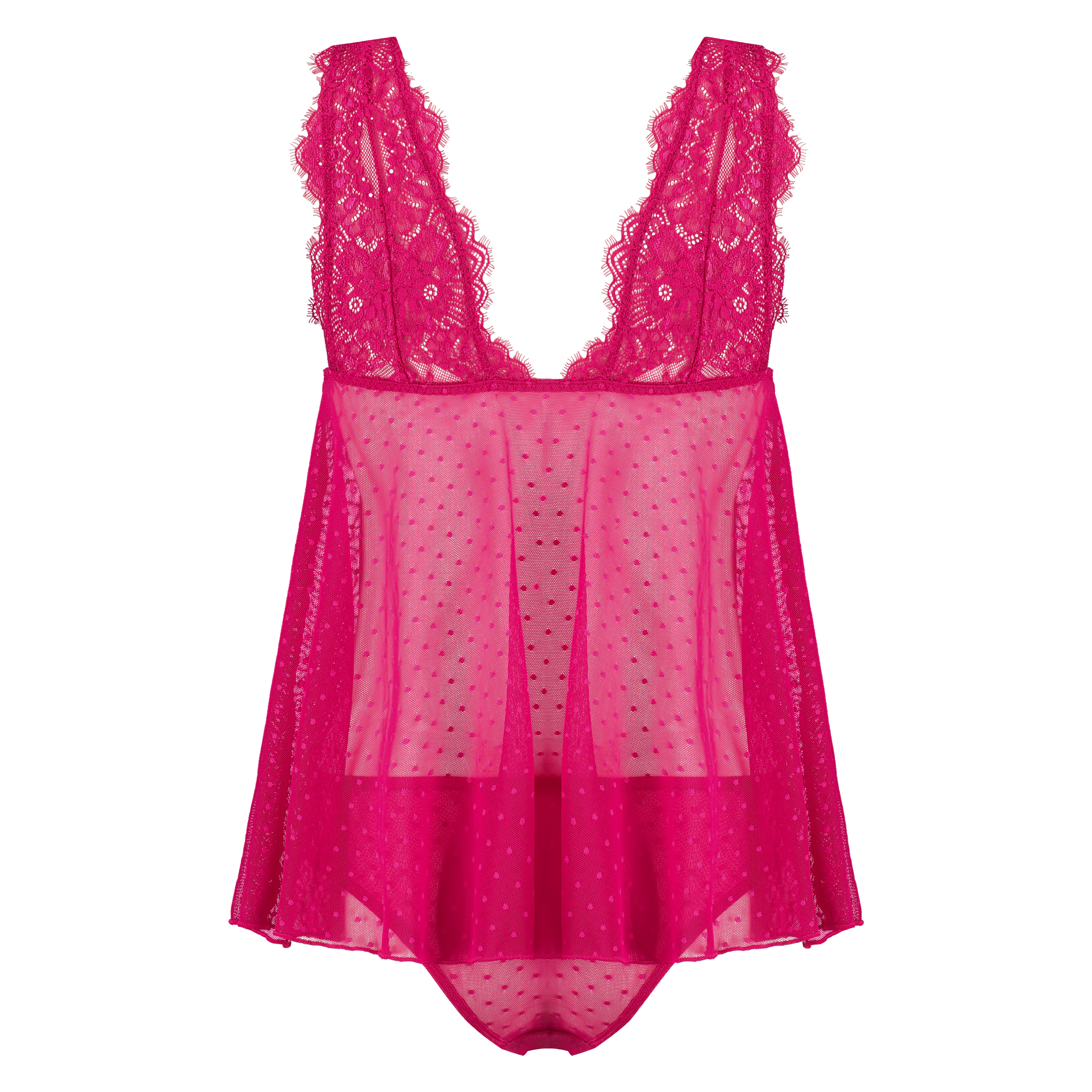 How lovely is this cami set? The top consists of mesh and lace and is finished with strappy detailing. The matching knickers are made of a mix of lace and mesh.