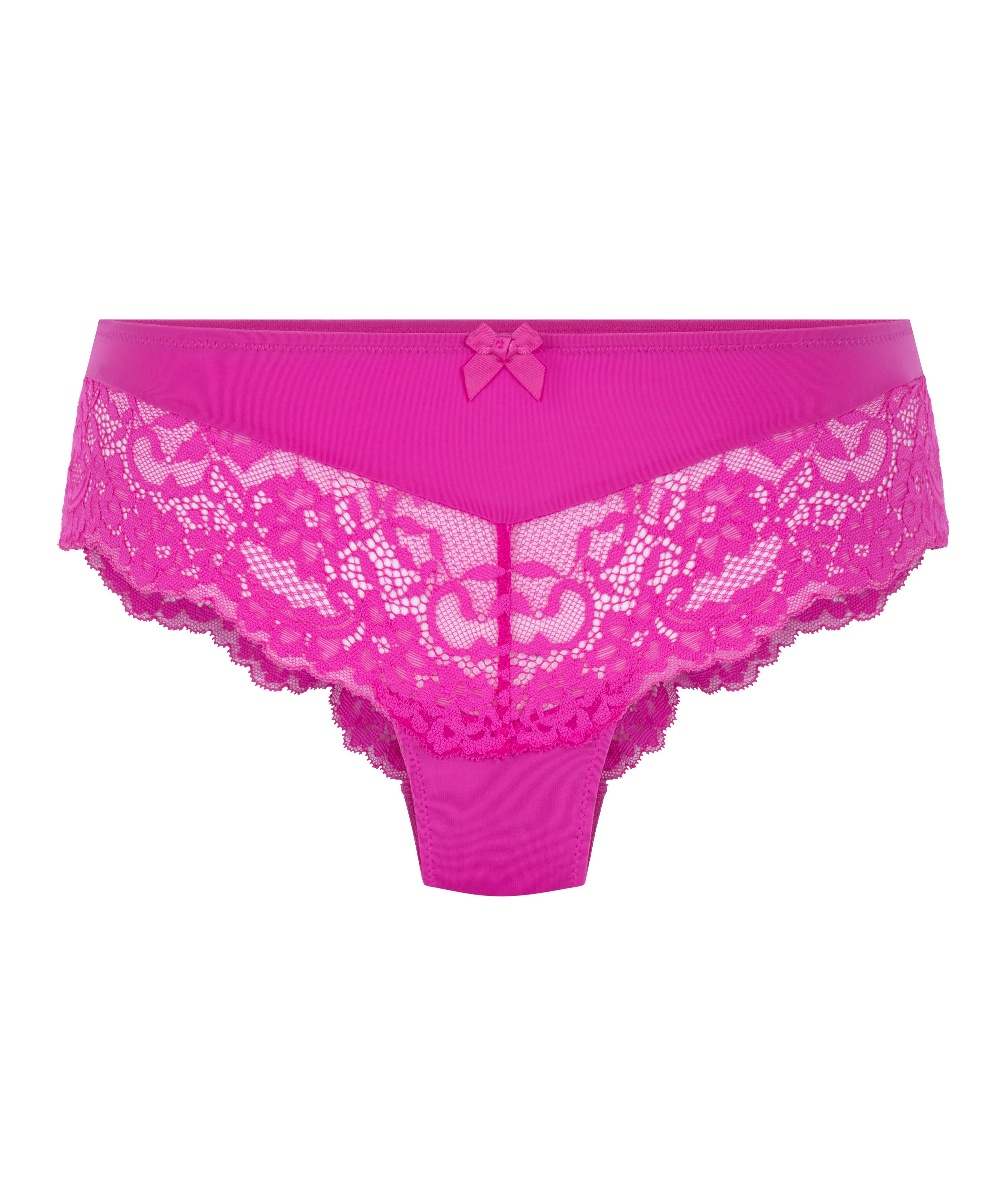 Opt for comfort with these beautiful Brazilian knickers. The Brazilian knickers are trimmed with lace and a small bow at the front. You can combine these knickers with many items, so they are a must-have in your collection! This super comfortable essential has a new and improved hand feel, very soft and stretchable. With a beautiful flower pattern lace which makes this style extra fashionable.