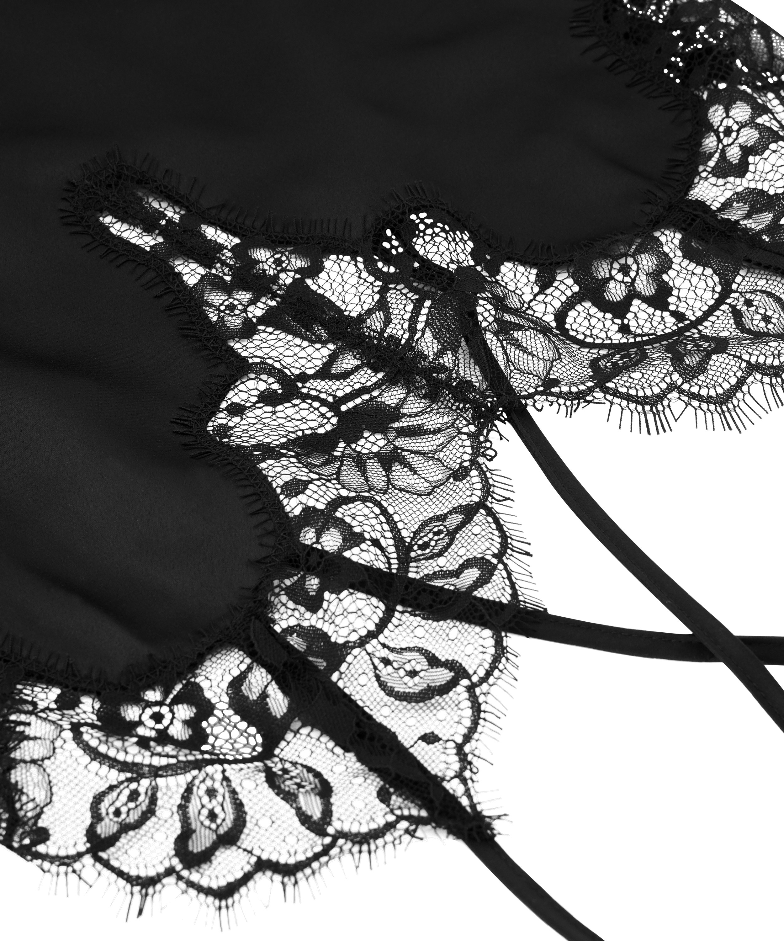 This slip dress is a must-have for your elegant collection! It is made of satin, has a beautiful v-neck and contains beautiful lace details. Combine with a matching kimono for a complete look. Part of the Noir collection.
