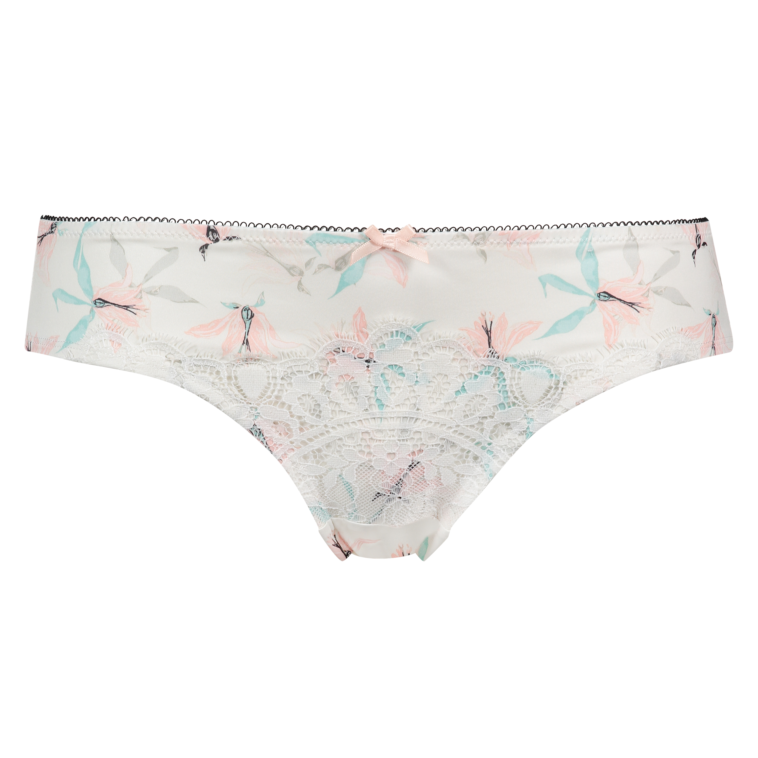 Hello spring! Get into the summer mood with these Brazilian knickers featuring an all-over floral print and finished with lace and a small satin bow on the front.