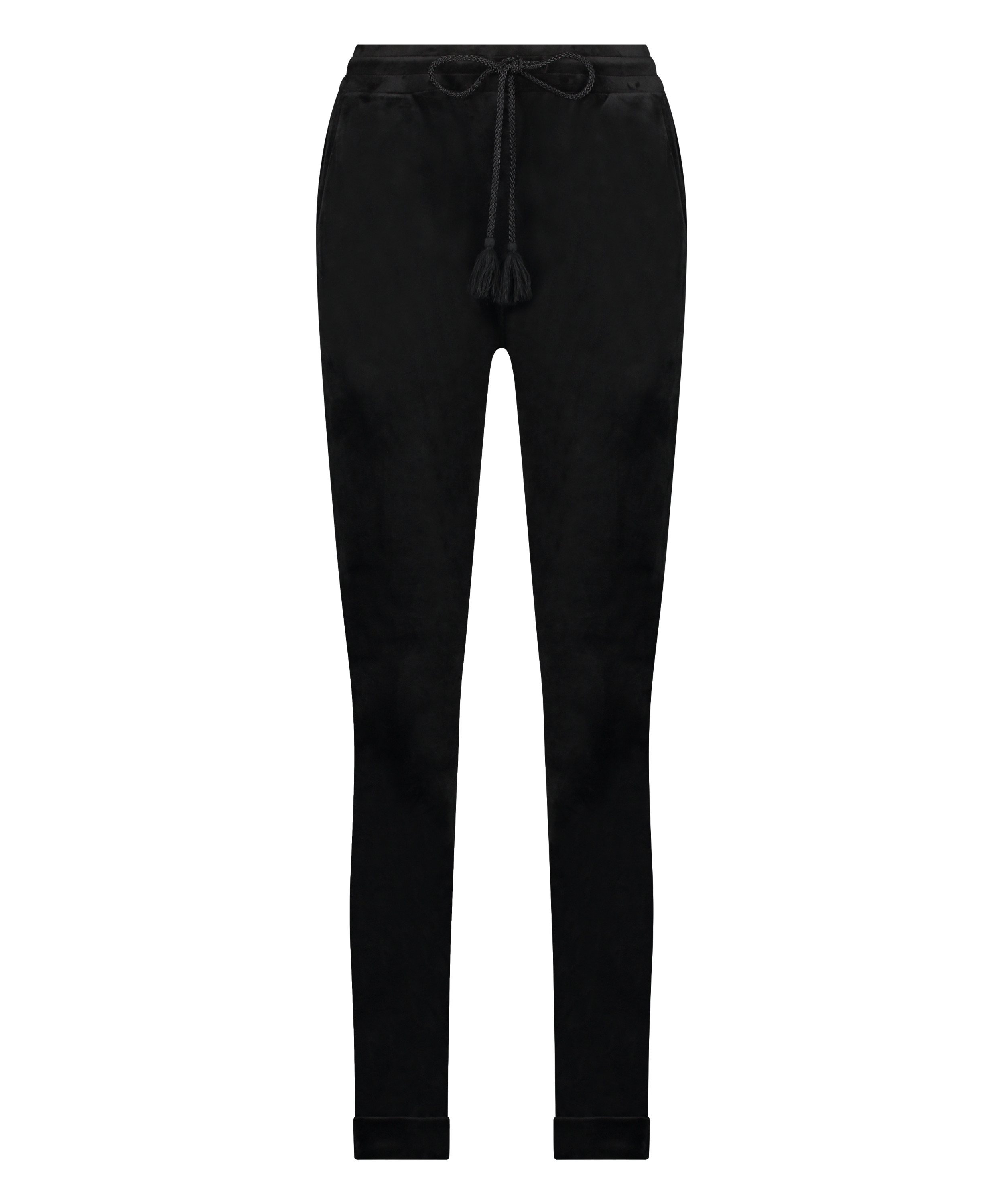 These jogging bottoms are perfectly designed for the ultimate lazy day. They are made from velours material, making them super soft. They are finished with braided string. Combine it with a matching top for a complete set!