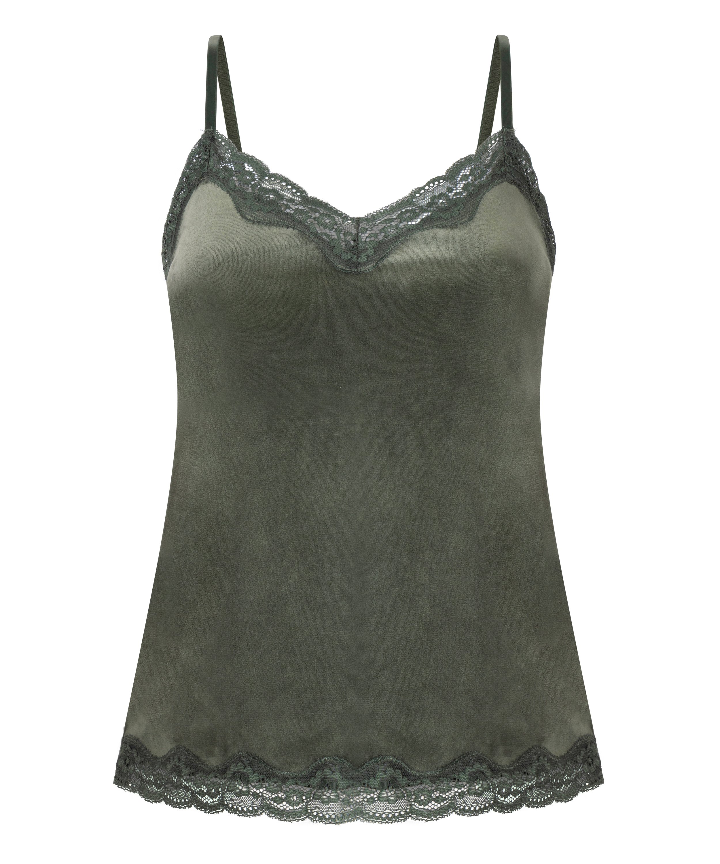 Feel super sexy and feminine with this soft top! The top is made of a velvet fabric and is finished with lace. Combine with matching items.