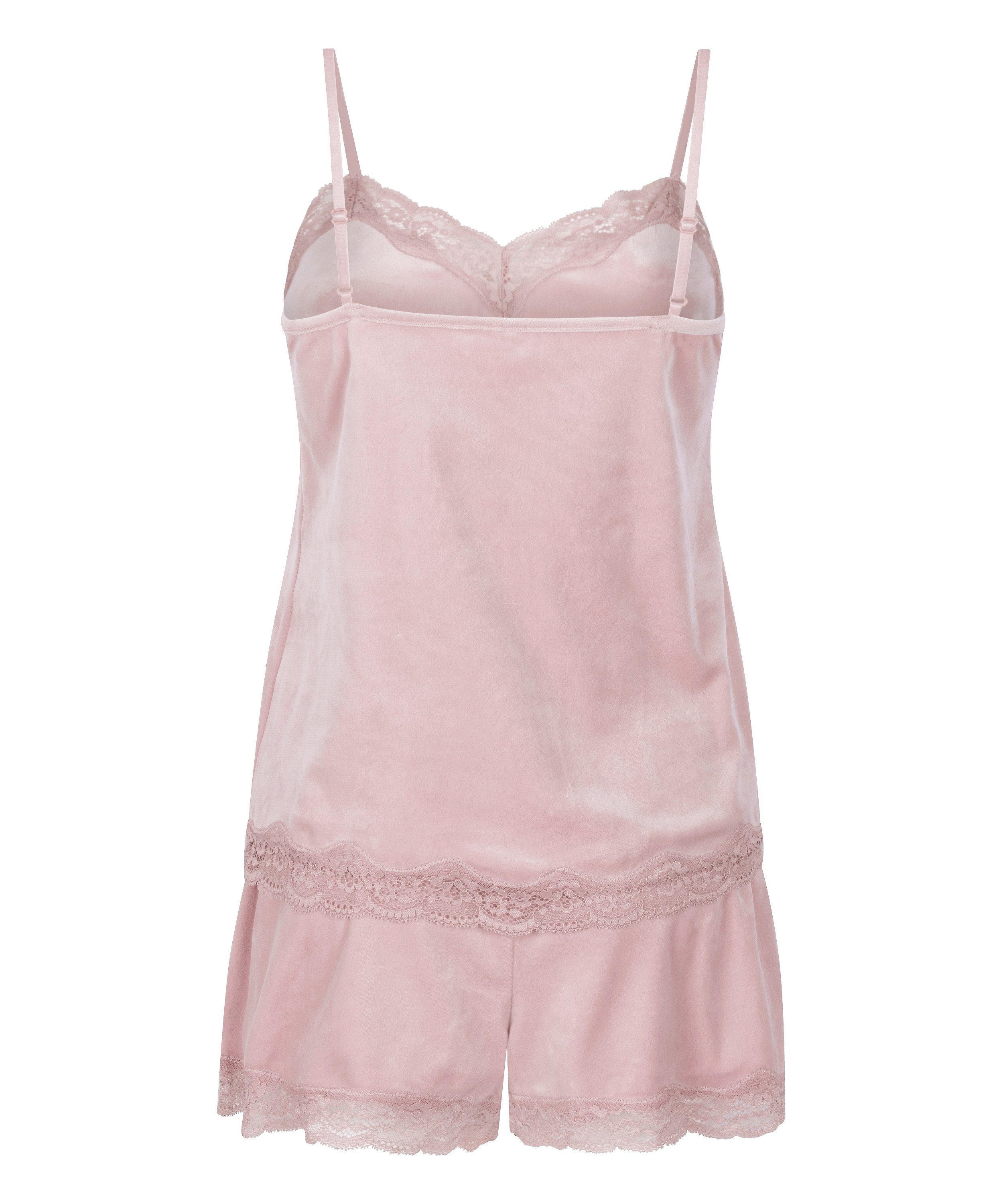 Feel super sexy and feminine with this soft top! The top is made of a velvet fabric and is finished with lace. Combine with matching items.
