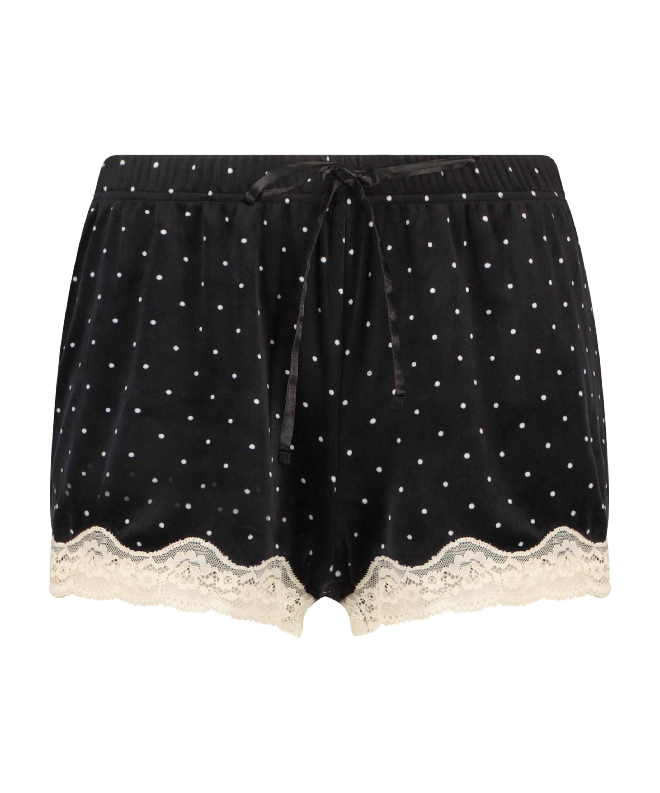 Feel super sexy and feminine in these shorts made from velvet fabric and finished with lace details. Combine with matching items for a complete outfit.
