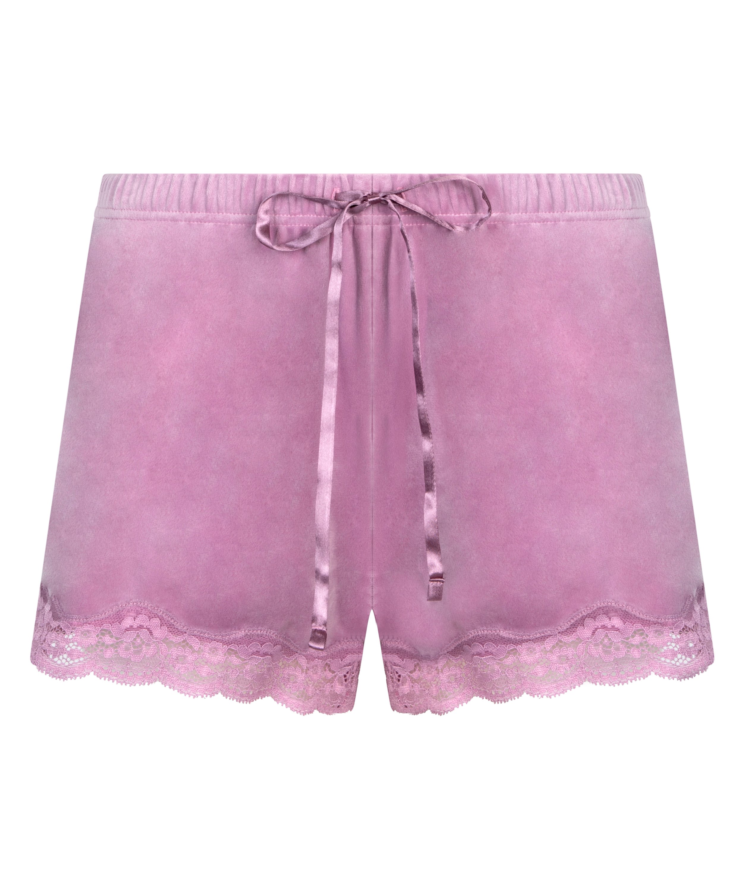 Feel super sexy and feminine in these soft shorts! The shorts are made of velvet fabric and finished with lace. Combine with matching items.