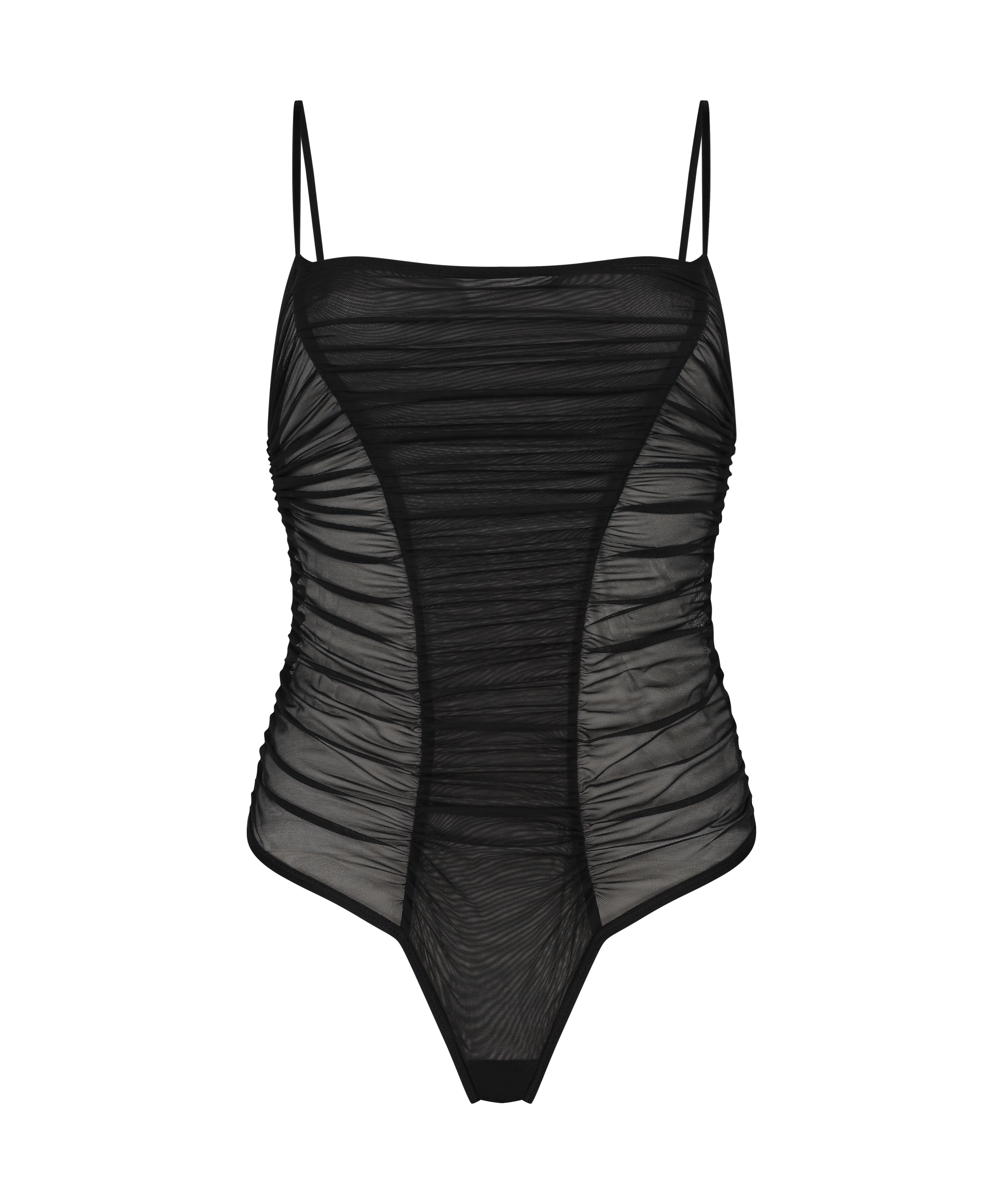This mesh bodysuit is a must-have for any fashionista. Featuring a flattering ruched design, this bodysuit is both stylish and comfortable. The mesh fabric is soft and breathable, making it perfect for all-day wear.