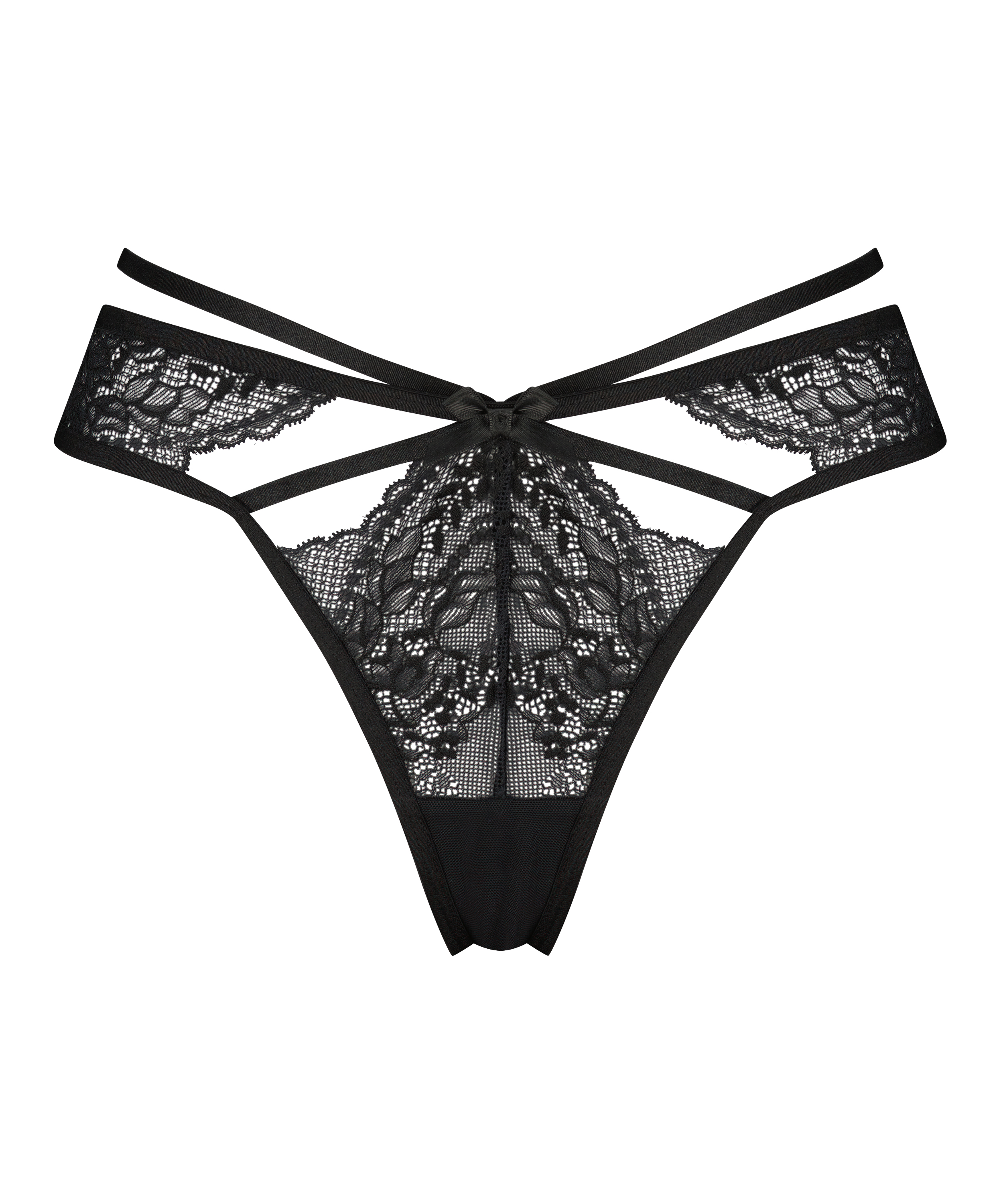 Feel irresistible in this thong! The thong has lots of lace and cut-out details. The thong also has strappy detailing. Combine with a matching bra.