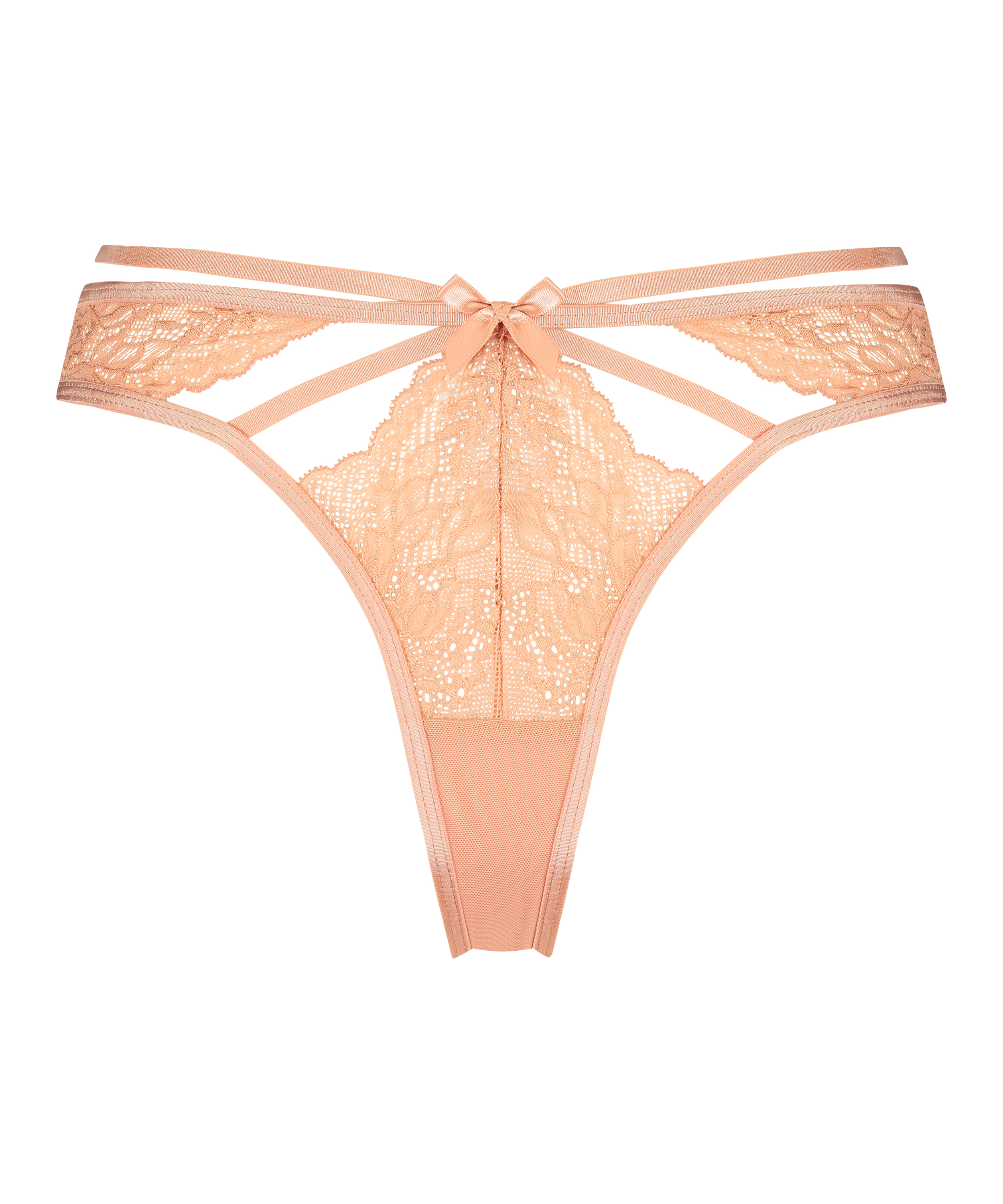 Feel irresistible in this thong! The thong has lots of lace and cut-out details. The thong also has strappy detailing. Combine with a matching bra.