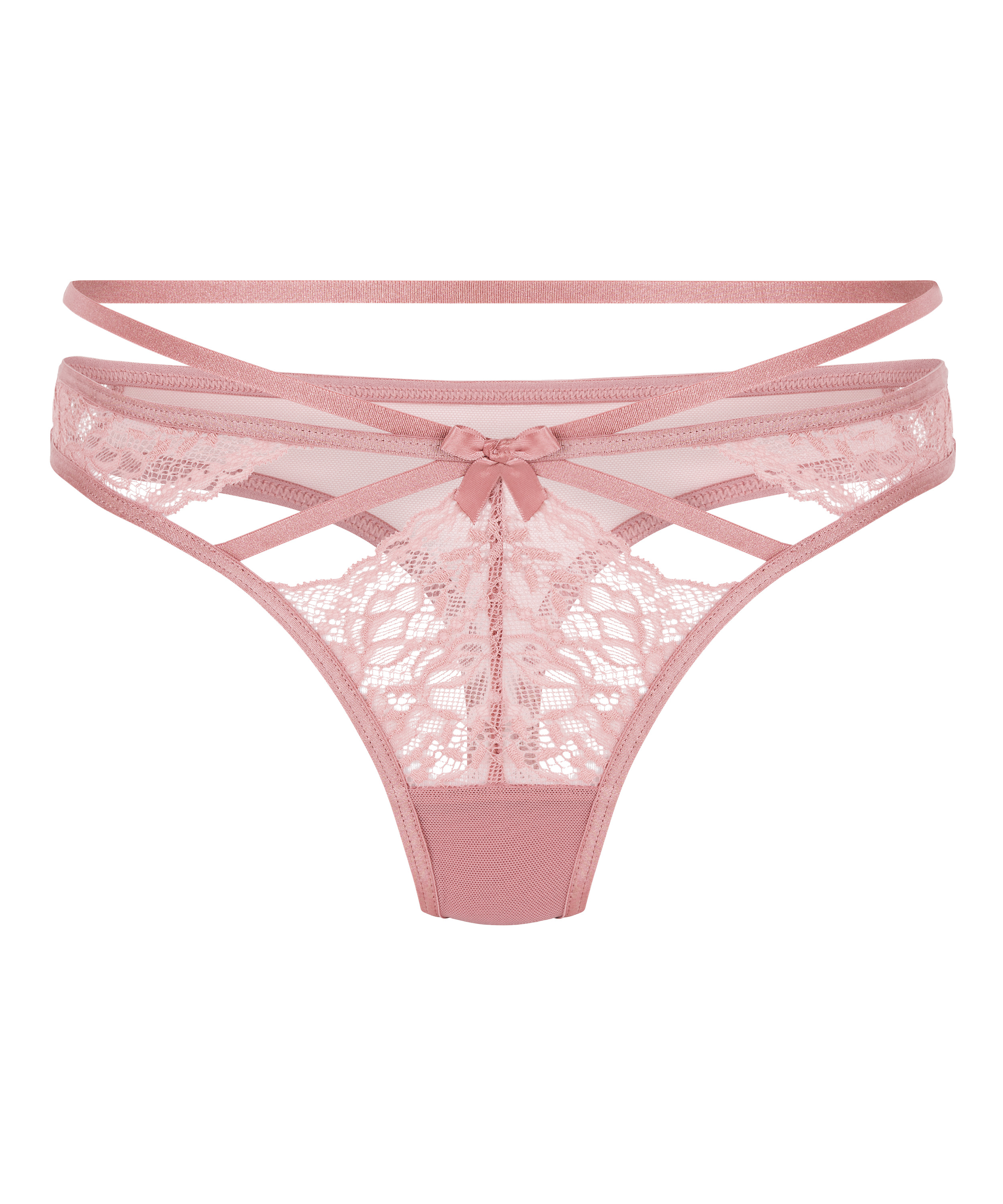 Feel irresistible in this thong! The thong has lots of lace and cut-out details. The thong also has strappy detailing. Combine with a matching bra.
