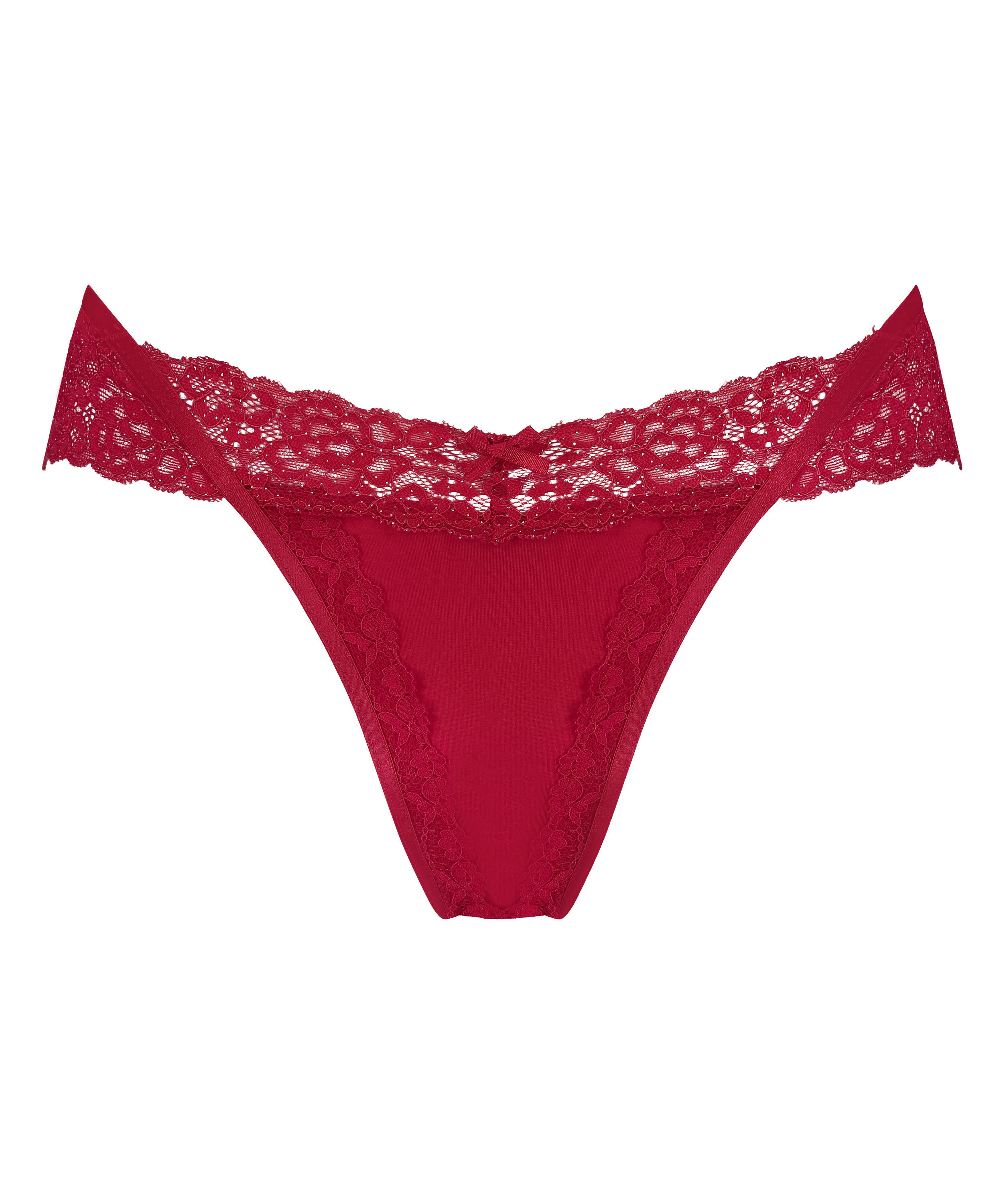 This low rise thong is sexy because of the lace. It has a bow on the front and a glittery dotted design.