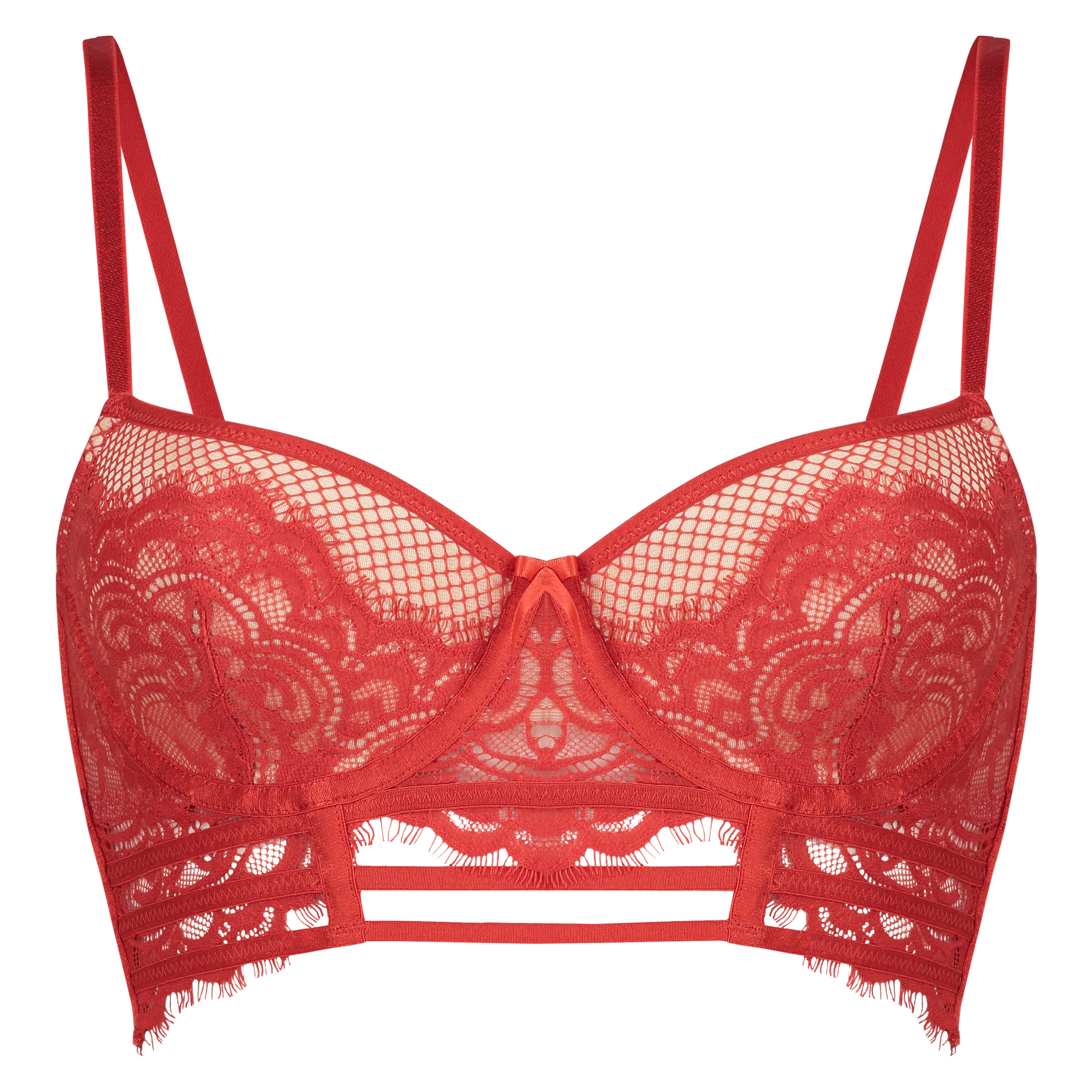 Complete your collection with this longline bra! The cups are finished with lace and the longline detailing is finished with strappy details and lace. Combine with matching items for a complete set.
