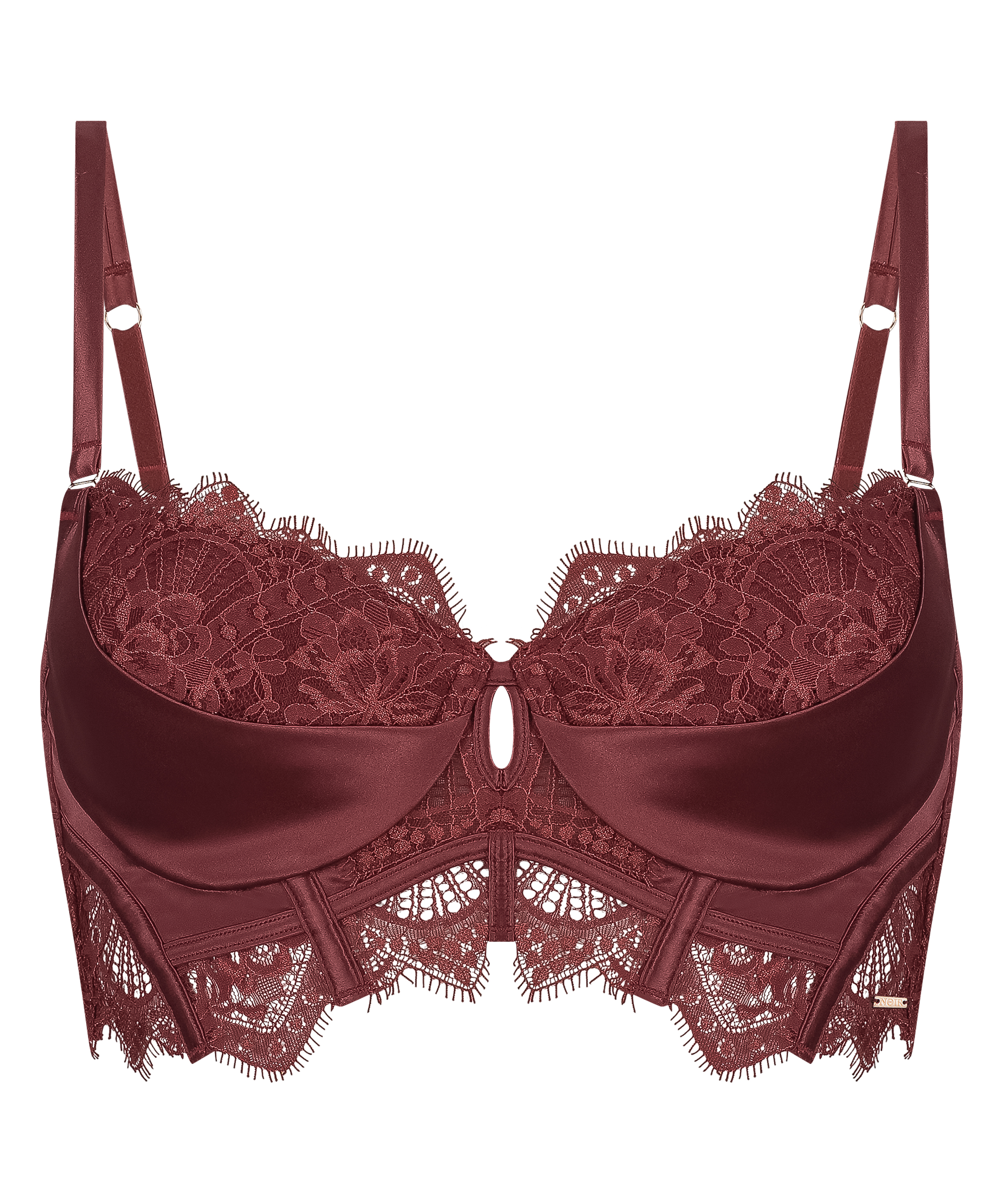 Feel super sexy with this padded underwired bra! The bra is finished with lace, mesh and satin details, giving it a luxurious look! There is also lace on the straps. Part of the Noir Collection.